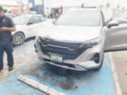 Una mujer de avanzada edad ocasionó daños en la entrada principal de un centro comercial que se ubica en la zona centro de la localidad, luego de que pisó el acelerador cuando pretendía estacionarse en el área de discapacitados.