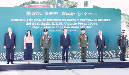 Manolo Jiménez Salinas, gobernador del Estado, reiteró su compromiso de trabajo coordinado con el Ejército Mexicano, al asistir a la toma de posesión del cargo y protesta de Bandera del general de Brigada DEM Vicente Pérez López, como comandante de la 6a. Zona Militar, ceremonia que encabezó el General de División DEM Eufemio Alberto Ibarra Flores, comandante de la XI Región Militar.