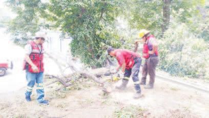 Protección Civil y Bomberos a cargo de Víctor Guajardo Loo, mantienen apoyo a la ciudadanía para retirar árboles que durante la tormenta pasada sucumbieron al fuerte viento que se registró y a petición de los vecinos de distintos sectores. Así lo dio a conocer Víctor Guajardo Loo, afirmó que son las actividades que se han estado atendiendo durante toda la semana, ya que en muchos de los casos las grandes ramas y troncos quedaron atravesados en los patios de las viviendas. La recomendación es que de manera continua la gente realice podas de los árboles para evitar que crezcan de manera peligrosa sobre sus viviendas o por los cables eléc-
