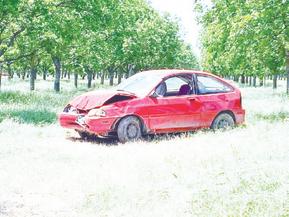 una distracción provocó que se saliera del camino, por lo que se asustó y en vez de pisar el freno pisó el acelerador, lo que provocó que el auto se fuera a toda velocidad en contra de la cerca perimetral de una nogalera y pasó con todo y auto para chocar final-