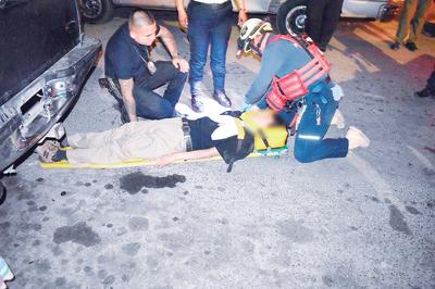 Del impacto con la camio neta Ford, el motociclista que dó debajo de la unidad por lo que de inmediato vecinos so licitaron el apoyo de una ambulancia teléfono de emergencias 911, por lo que arribó una unidad de primeros auxilios de Bomberos, la cual tras-