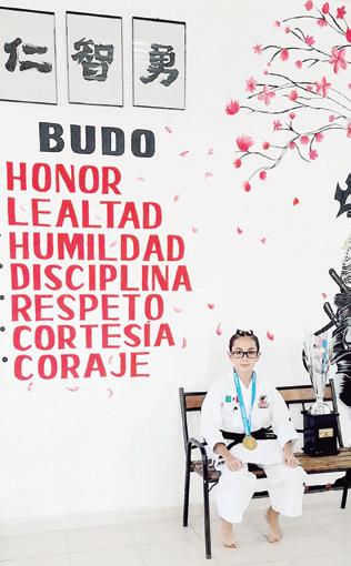 “Entreno karate desde hace tres años con mi sensei Vicente Velázquez, el pasado mes de julio pude representar a México en el campeonato mundial de Escocia, obteniendo la medalla de oro en kata, al enfrentarme con los contrincantes de Inglaterra y Escocia”.
