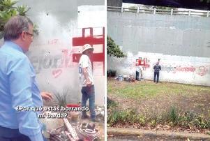 “Oye, ¿por qué estás borrando mi barda? ¿Quién te paga con ‘EsClaudia’?”, reclamó el aspirante a los trabajadores que borraban la propaganda y pintaban el lema de Claudia Sheinbaum.