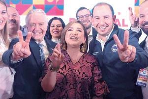 ni nadie. La unidad no es de dientes para fuera. La unidad está aquí, en el corazón y antes que un proyecto personal, está México. Del PAN nos vamos a Palacio Nacional”, advirtió Creel. El también presidente de la Cámara de Diputados dijo a los panistas que había formado con Xóchitl “una mancuerna indestructible”. Al jefe nacional del blanquiazul, le reconoció por haber llevado al partido al seno del Frente. z “Santiago y yo no nos vamos a pelear”, aseguró Xóchitl Gálvez (centro).