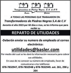 A todas las personas que laboraron 60 días o más durante el año de 2023, favor de acudir a las instalaciones de la empresa los días 23 y 24 de mayo en un horario de 3:00 p.m. a 5:00 p.m.