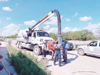 Personal del Sistema de Agua po table y Saneamiento (Simas) de Zaragoza, Coahuila, continúa rea lizando trabajos de desazolve en la red de drenaje del sector oriente a la altura de la colonia Presidentes para resolver el problema de con taminación por aguas residuales.