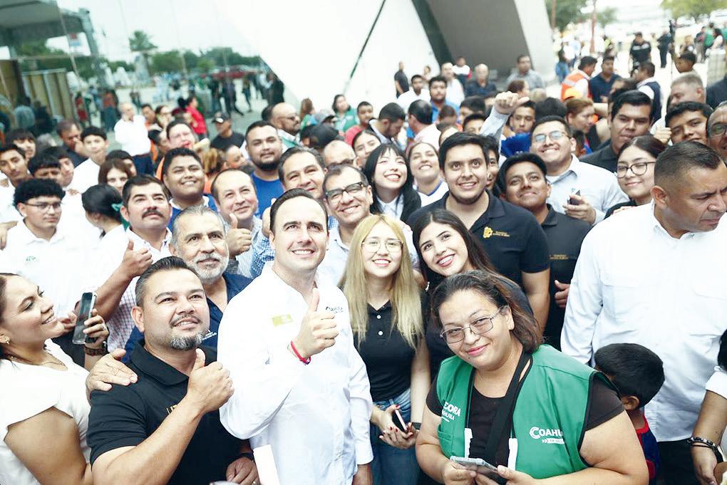 Acompañado de la subsecretaria Sonia Villareal; de Memo Ruiz Guerra, el diputado local; de Marco Saldaña, coordinador local de Mejora Coahuila y de los exalcaldes Chuy Mario Flores y Óscar López, además de Raúl Vela, se vivió un gran ambiente también por el programa de en-