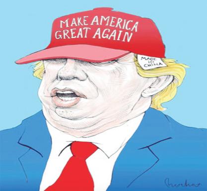 Hacer a América Grande de Nuevo Esta frase comenzó a escucharse a mediados de los años 80 de los labios de algunos políticos del Partido Republicano. Ha servido para incrementar la ignorancia del votante promedio estadunidense de tez blanca, y resentido por las políticas de su Gobierno. Se nutre de los recuerdos y atribuye la decadencia de la economía norteamericana (en relación al PIB mundial) a cuatro factores: 1) La globalización del comercio; 2) La inmigración; 3) La pérdida de valores; y 4) Los aumentos en los impuestos.