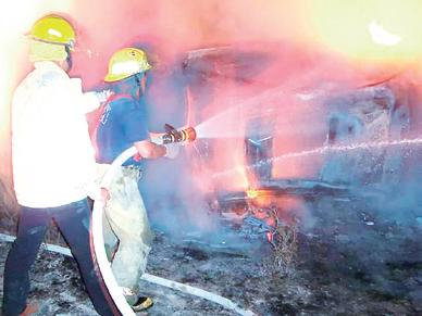 Se informó que el personal del Cuerpo de Bomberos utilizó alrededor de 10 mil litros de agua para sofocar en su to-