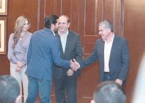 z Miguel Riquelme, gobernador de Coahuila saludando al alcalde de Arteaga, Ramiro Durán García.