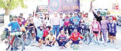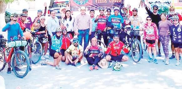 El presidente municipal de Villa Unión, Mario Humberto González Vela, junto con funcionarios del Ayuntamiento, recibió por primera vez a los 50 ciclistas que participan en la “Ruta Chichimeca 2024”, recorriendo todo el territorio mexicano.