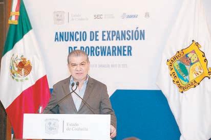 Directivos de la empresa BorgWarner anunciaron este día la expansión de su Campus Ramos Arizpe, en el que se invertirán 54.3 millones de pesos con la generación de 280 nuevos empleos, ceremonia en la que estuvo presente el gober- nador Miguel Ángel Riquelme Solís.