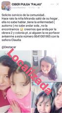 Durante la tarde del sábado se dio el reporte de una menor perdida, esto en la colonia Obrera Dos y colonia PT del mineral de Palaú, donde autoridades iniciaron los protocolos de búsqueda.