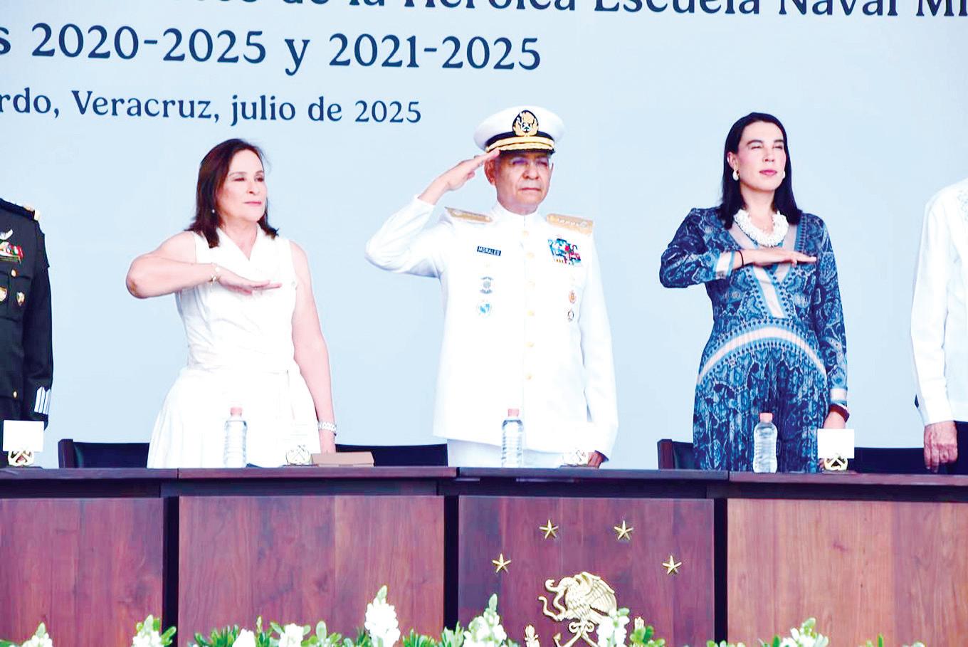 En una ceremonia de graduación de 337 Guardiamarinas (243 hombres y 94 mujeres) de la Generación 2020-2025 y 2021-2025 de la Heroica Escuela Naval Militar, en Antón Lizardo, el Alto Mando Naval llamó a los egresados a mantener la confianza de los ciudadanos y garantizar un entorno de paz y justicia.