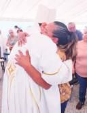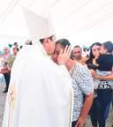 En lo alto de la cortina de la presa de La Amistad, que se usa como puente de cruce internacional entre Acuña y Del Río, Texas se realizó el abrazo de la amistad entre las representaciones de ambos lados de la frontera..