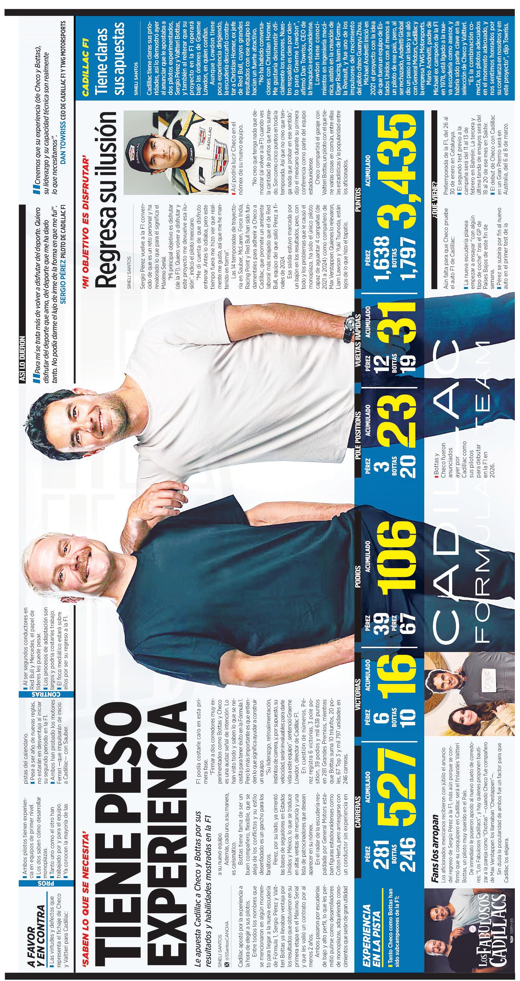 EL REGRESO DE Checo Pérez a la Fórmula 1 con Cadillac no sólo marca un nuevo capítulo en su carrera, sino también un impulso comercial. En menos de 24 horas, la cuenta de Instagram de Cadillac F1 pasó de 1 millón a 1.88 millones de seguidores, y en X duplicó su base a 147 mil 800 seguidores. Con patrocinadores como Telcel, Kit Kat, Maja y Patrón, Cadillac asegura ingresos inmediatos. Además, se estima que el GP de México 2026 generará