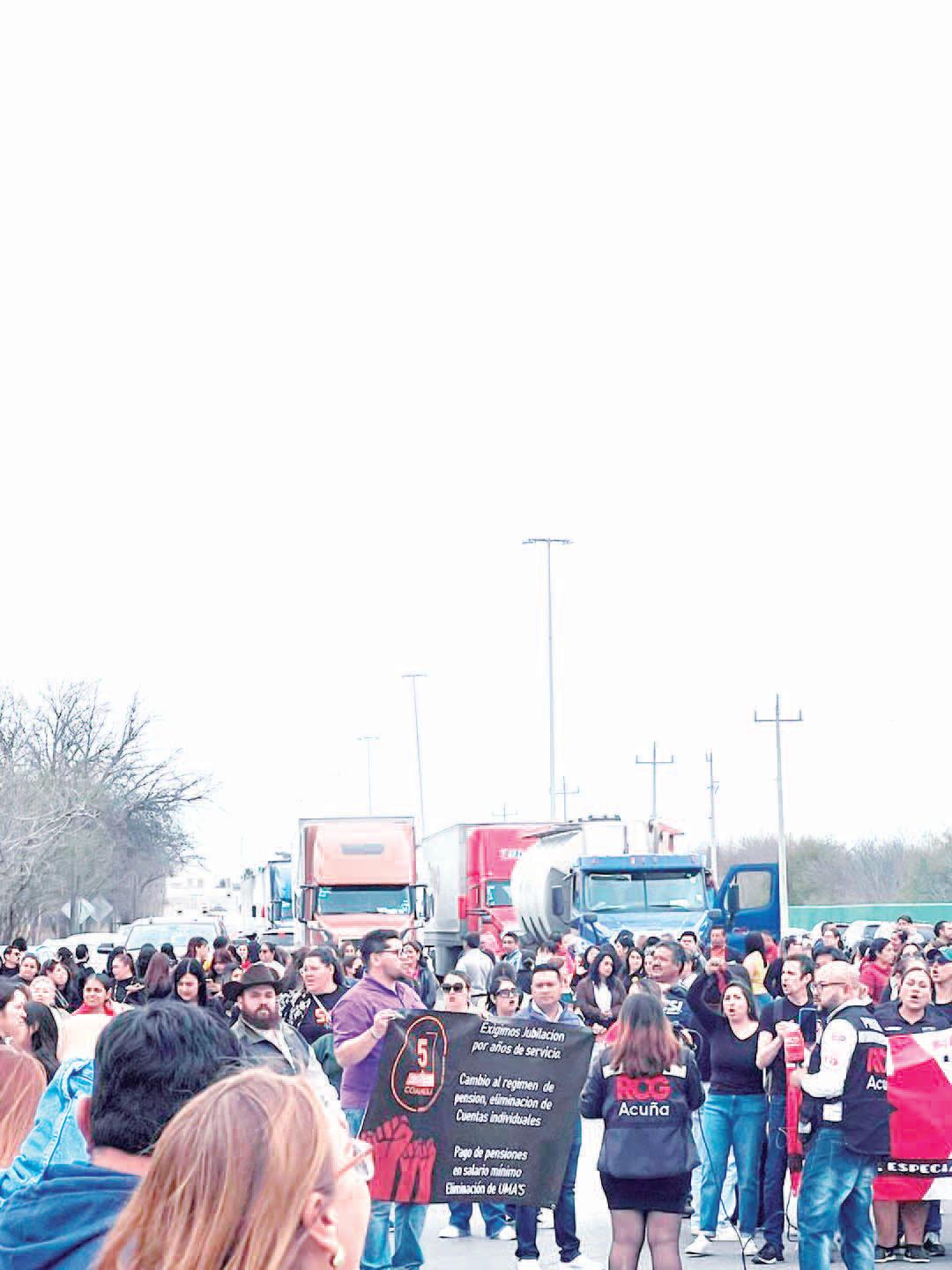 Cerca de 300 maestros de la sección V, se apostaron en el libramiento Jesús María Ramón, a la altura del puente internacional por espacio de 15 minutos por estar en desacuerdo con la nueva reforma del ISSSTE. Impulsada por