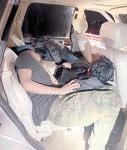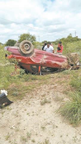 Al arribar al lugar, se encontraron con un vehículo volcado de la marca Dodge Neon color rojo, con placas de circulación FBX 264 B del estado de Coahuila.