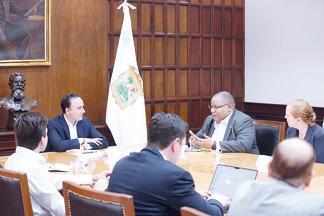 En el encuentro, que tuvo lugar en Palacio de Gobierno, se dio en seguimiento a la reunión que sostuvo hace unos días en Torreón con el embajador de Estados Unidos en México, Ken Salazar, para el
