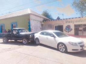 accidente de tránsito que se registró este sábado entre una camioneta y un vehículo que estaba estacionado por la calle Presidente Juárez, entre las calles Lucio Blanco y José Flores González.