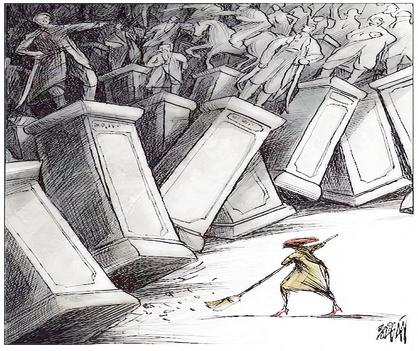 Otro que salió muy mal parado durante el 8M fue el alcalde de Torreón, Román Alberto Cepeda González. Todo porque inicialmente emitió un comunicado donde se garantizaba la libre expresión y tránsito de las marchistas durante el Día de la Mujer. Sin embargo, el sábado amaneció la Plaza Mayor cercada y resguardada por policías municipales. En las vallas próximas al monumento a Benito Juárez se colocó una lona que decía: “Prohibido el paso, riesgo de explosión o incendio. Este lugar cuenta con instalaciones de gas”. El “simpático” mensaje causó indignación inmediata entre la población, por la manera tan burda en que “Robán” Cepeda se escudó ante el temor de los reclamos de las torreonenses.