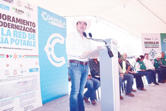 cos, porque a partir de ahora y durante todo el año, “vamos a chulear Múzquiz”. El ejecutivo habló del cumplimiento de campaña de él y de la alcaldesa de Múzquiz en cuanto a mejorar el sistema de agua potable y con esta inversión se benefician más de 40 mil habitantes en esta cabecera municipal, de las obras que se llevarán a cabo durante todo este año, y que con esta importante obra inician este sábado los festejos por cumplir los 100 años de la ciudad de Múzquiz. Aclaró que además de todas estas acciones, no se descuida el tema de la Seguridad y por eso se están construyendo los cuarteles rumbo a Boquillas del Carmen, ejido Morelos, El Melón y San Miguel. Invitó a los asistentes a disfrutar este domingo el concierto del grupo La Firma y todos los festejos que vienen con motivo del aniversario de este municipio de Melchor Múzquiz.