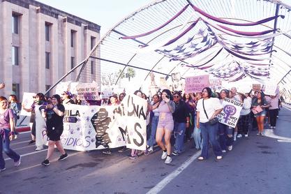 diente de las que salieron de sus casas y sus trabajos para llegar a la cita en la Macroplaza, donde se integraron cuatro contingentes. Con carteles y con consignas como: “Mujer, escucha, esta es tu lucha”. “¡Ni una menos, ni una menos, porque vivas nos queremos!”. “Señor, señora, no sea indiferente, se mata a las mujeres en la cara de la gente”, caminaron por las calles de Piedras Negras. n Especial 3, 4 y 5A