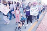 observar que iban con carriolas y fueron cuidadas en todo momento por los demás contingentes. El tercer contingente se conformó de mujeres que asistieron a su primera marcha y el cuarto contingente todas las mujeres que ya habían participado en anteriores marchas. Entre las consignas se escucharon: “Mujer, escucha, ésta es tu lucha”. “¡Ni una menos, ni una menos, porque vivas nos queremos!”, “Señor, señora, no sea indiferente, se ma-