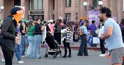 Desde las 17:00 horas, mujeres integrantes de diferen tes colectivas feministas, se congregaron en el águila de la Macroplaza, donde previa mente Hilos del Corazón y Fa milias Unidas realizaron una exposición de la historia de madres buscadoras, la lucha y la labor que hacen en la bús queda de sus desaparecidas y desaparecidos. El Frente Feminista de Piedras Negras integrado por diferentes colectivas, marcharon con sororidad por las que no pueden hacerlo, en el marco de la conmemoración del Día Internacional de la Mujer.