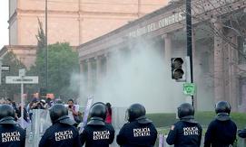 Aprovechando las manifestaciones, a un inadaptado social se le ocurrió causar daños al edificio del Congreso de Estado. Afortunadamente, este hombre fue detenido y puesto a disposición ante el Ministerio Público.