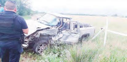 neta de reciente modelo Ford F-150 color negro, con placas del estado de Chihuahua, que conducía una mujer identifi- cada como Érika Garza. Se presume que uno de los conductores invadió el carril contrario provocando el fuerte impacto que causó que la Ford F-150 perdiera la llanta delantera del lado del conductor, mientras que un fuerte golpe se apreciaba en el costado izquierdo de la Ford Ranger gris, considerándose cuantiosos daños materiales. Del lesionado se reporta con pronóstico reservado y fue atendido en el Hospital General de Múzquiz.