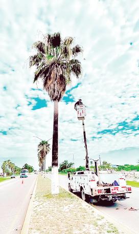 Además, se están reemplazando luminarias a lo largo de todo el municipio para mejorar la iluminación y realizando la poda de las palmeras en la entrada norte de la ciudad.