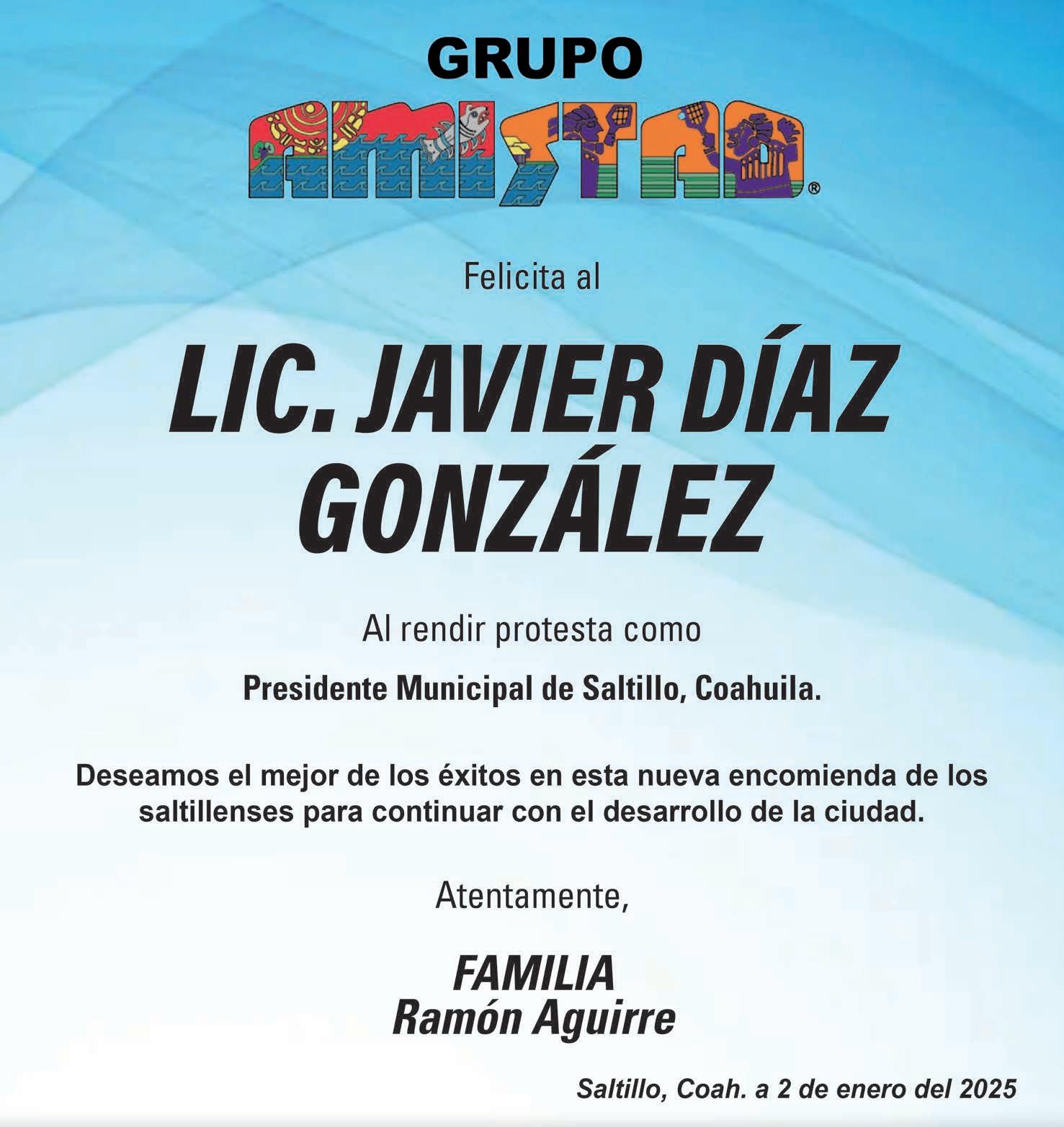 “Cerramos el primer día de este 2025 acompañando a nuestro amigo Javier Díaz en su toma de protesta ciudadana como alcalde de Saltillo. Donde presentó un plan muy bien estructurado para la capital de Coahuila. En conjunto vamos a desarrollar grandes obras, proyectos y programas. El trabajo en equipo entre Estado y Municipio siempre da mejores resultados. Felicidades, mucho éxito y a darle con todo por Saltillo y Coahuila”, destacó.