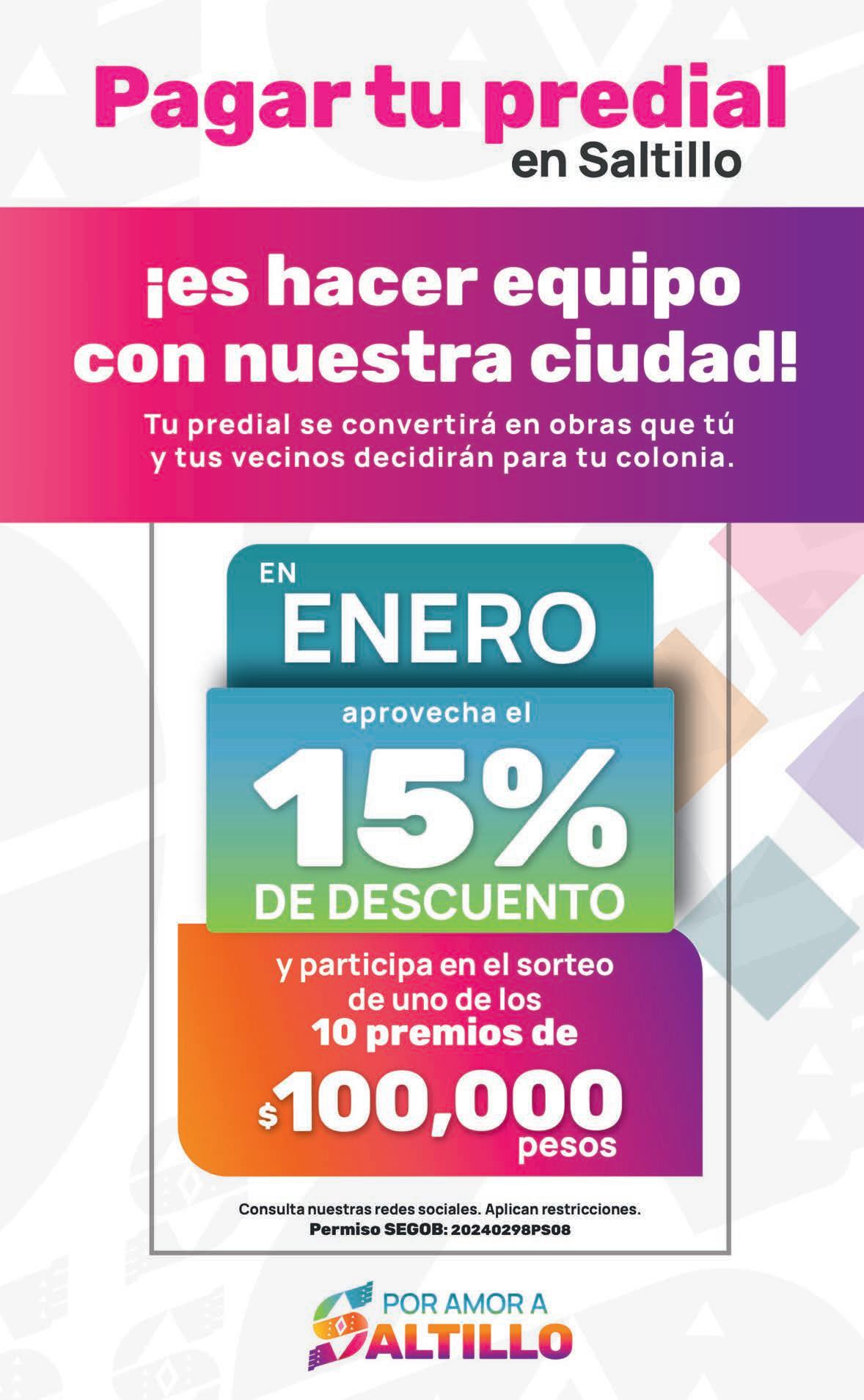 Lo que viene z Recinto Ferial para Saltillo. z Ampliación de la carretera a Derramadero en los primeros 100 días del nuevo Ayuntamiento.