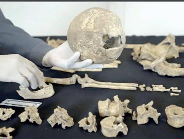 Martín Hernández Carbajal, especialista en Antropología Física, analiza los restos de los 14 esqueletos encontrados que podrían revelar el tipo de vida de los pobladores y su estado de salud. “Son un total de 11 entierros primarios, de los cuales son 14 individuos en total, ocho individuos subadultos (niños) y seis individuos adultos. En esta primera etapa es resguardarlos y llegamos a tener un tratamiento óptimo para investigarlos desde una perspectiva oseográfica”, expuso.
