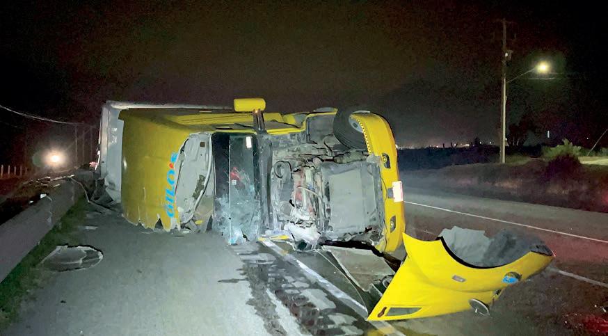 lio Cruz Centeno, de 36 años, perdió el control del vehículo a la altura del ejido Higueras, y tras volcar salió proyectado de la cabina hacia la barrera metálica, donde la unidad lo aplastó y lo arrastró por varios metros. Debido al accidente, una pierna del chofer se despren-