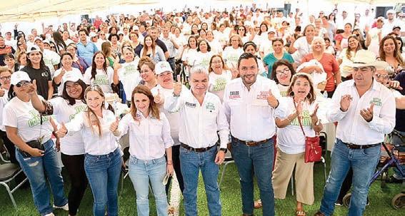 DE VERDE Y GUINDA Un inesperado espaldarazo recibió este viernes el aspirante a la Alcaldía de Ramos Arizpe, Tomás Gutiérrez, quien presumió el apoyo de Fernando Silva Reyna, agente de la Policía Federal y cuadro fuerte de Morena en ese municipio. Y ahí no terminó la cosa, pues en el megacrucero de la colonia Fidel Velázquez también recibió el apoyo incondicional de Tita Flores, tía de la candidata por el mismo municipio por el Verde Ecologista, Areli Flores.