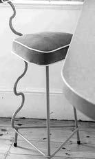 Un taburete alto de estructura metálica y cuyo acento moderno y característico es lo ondulado de la varilla que hace de pata y soporte del respaldo es Flo, pieza creada por Fox & Furb.