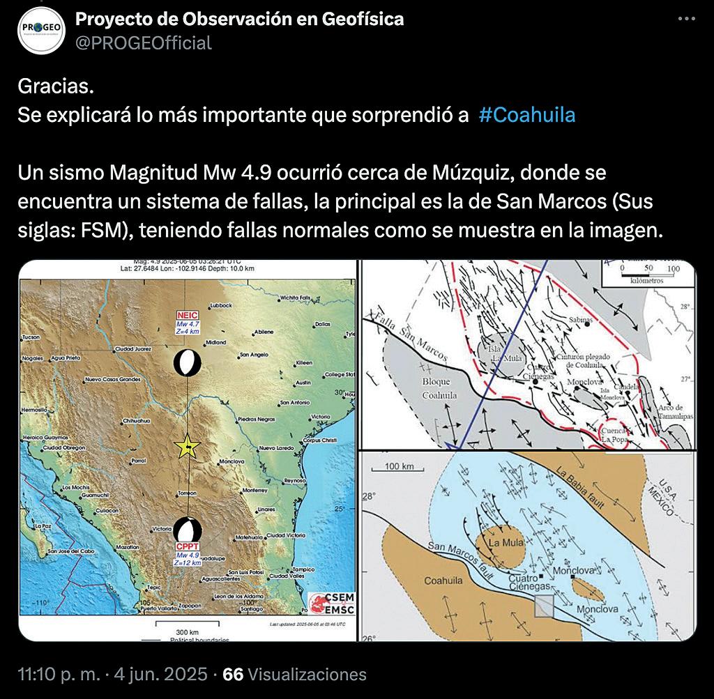 El temblor registrado anoche, es el quinto sismo en Coahuila en lo que va de 2025.
