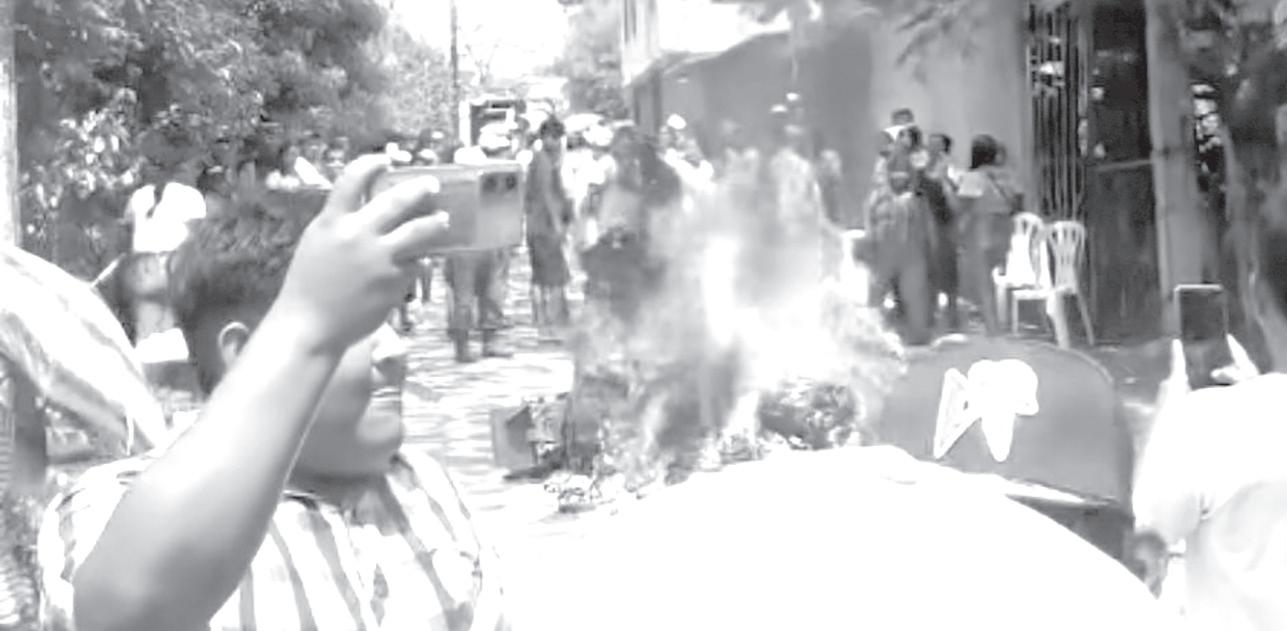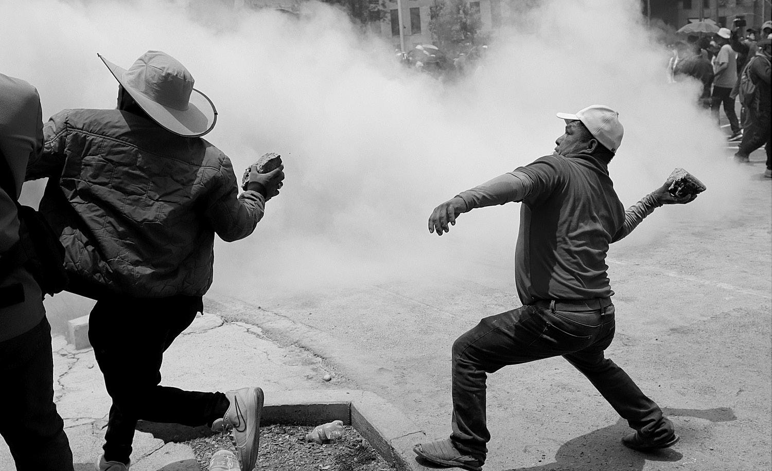 Ahora van por piedras del tamaño de su regazo y comienzan a lanzarlas a la entrada.