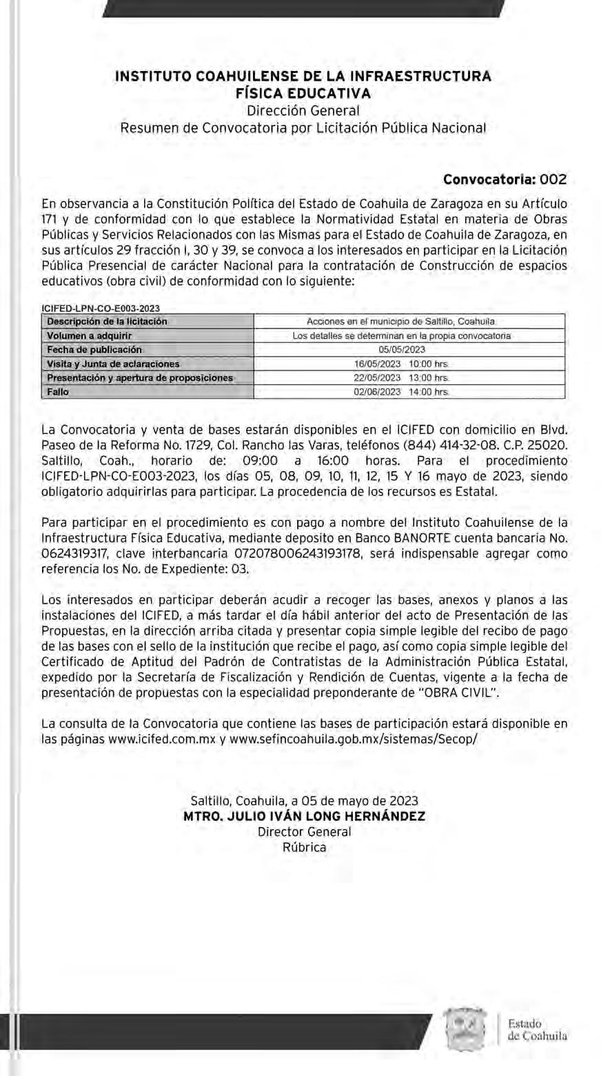 FER. PRESENTARSE CON SOLICITUD EN CORONA PONIENTE #665. 844-412-03-68 Y 844-410-63-63