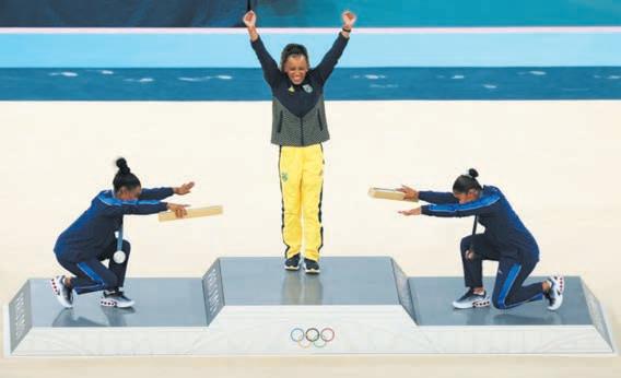 Biles festejó como oro la medalla de bronce de su compañera Jordan Chiles, abrazo efusivo, pues Estados Unidos hizo el 2-3 en la prueba de piso. Biles se convirtió en admiradora de Rebeca durante la premiación y le brindó sonoros aplausos.