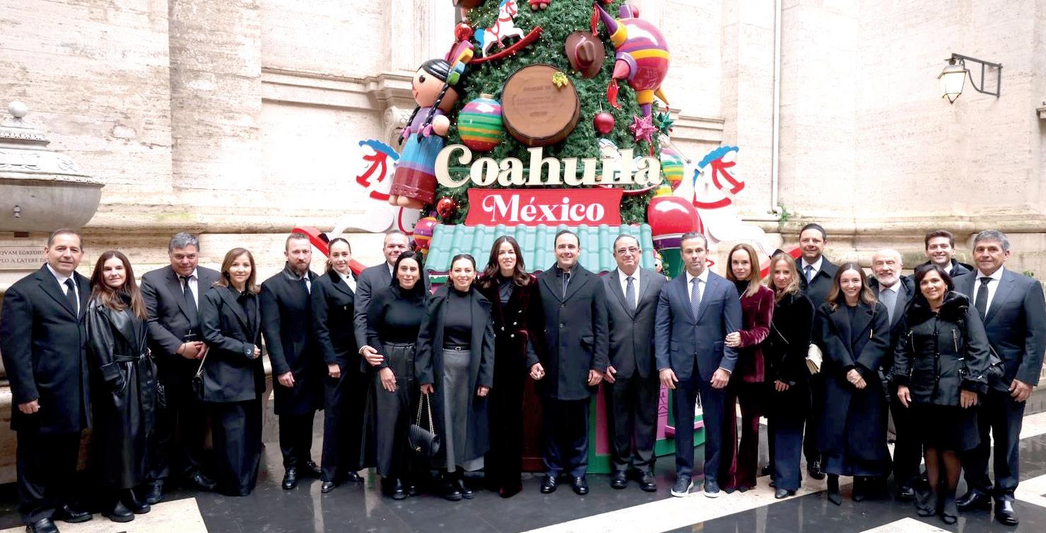 Como parte de las actividades llevadas a la Santa Sede, Coahuila instaló una réplica del árbol navideño de Villamagia y presentó al grupo de matlachines de la danza de la Virgen de la Medalla Milagrosa, de Torreón.