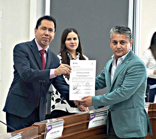 En las instalaciones del Instituto Electoral de Coahuila se entregaron las constancias de mayoría a quienes conformarán la nueva alineación del Poder Judicial del Estado. Al centro se mantuvo el presidente del Tribunal Superior de Justicia, Miguel Felipe Mery Ayup, quien conservó su postura ante el proceso que acaba de culminar.