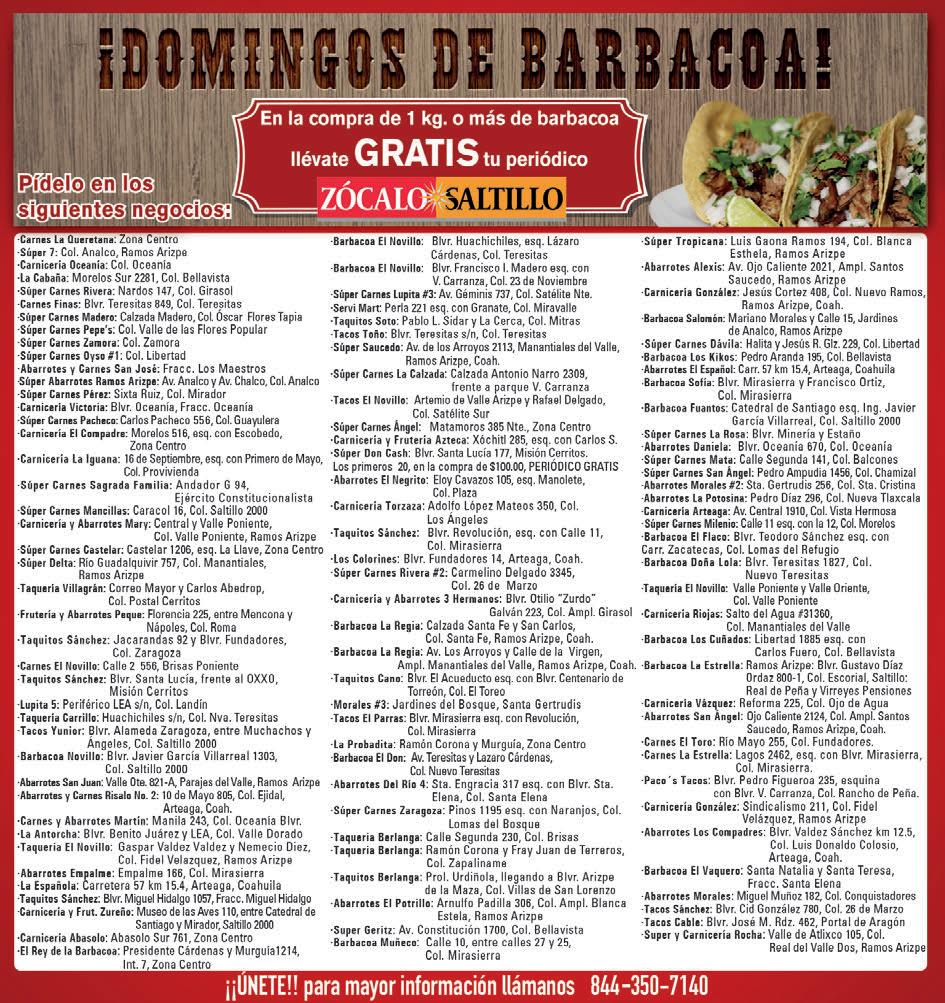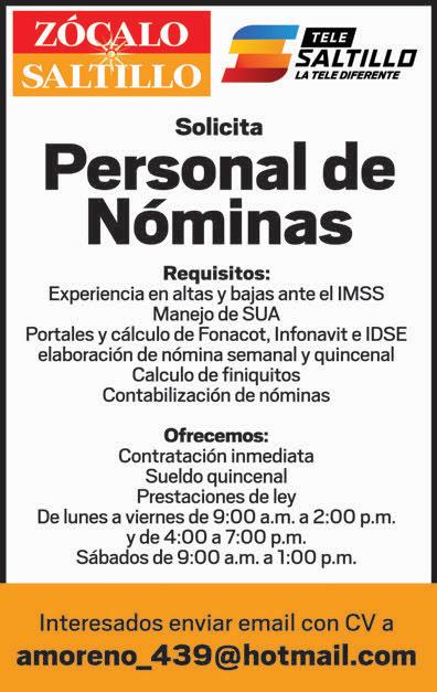 ESTUDIANTES JORNADA LABORAL DE 8 HRS PRESTACIONES DE LEY. PRESENTARSE C ON SOLICITUD ELABORADA EN RESTAURANTE EL RADIO BLVD EL MINERO CASI ESQ CON BLVD EULALIO GTZ COL LOS GERANIO SALTILLO VARIOS