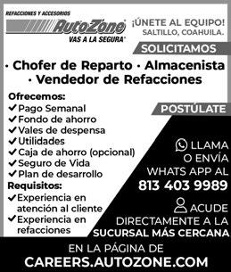 REAL DE 14 SEPTIEMBRE 1 TEL 844-171-0776 WP 81-16-61-29-33 6F Clasificados ZóCalo Saltillo Jueves 10 de agosto del 2023 NISSAN DODGE VARIOS VARIOS FLETES