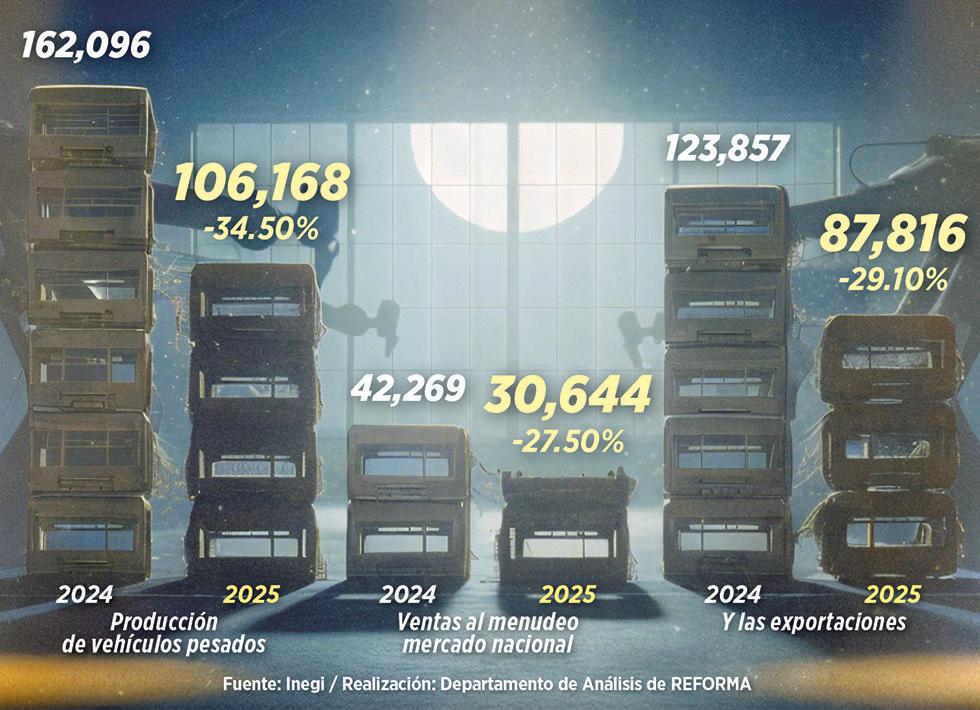 Imagínense que deje de producir ese porcentaje y el costo que van a tener esas unidades nuevas para el mercado mexicano. Todavía no sabemos de qué tamaño va a ser el impacto”, advir- tió Miguel Ángel Martínez, presidente de la Canacar. En los patios de las ensambladoras no hay lugar para almacenar inventarios detenidos. Cada camión que se ensambla ya tiene comprador, ruta y operador. Si el cliente cancela, la línea entera se detiene. La industria pesada no fabrica para tener en vitrina; fabrica para rodar. El temor es que la sacudida en las exportaciones termine por alterar también el mercado interno. Si los fabricantes se ven forzados a colocar en México lo que antes enviaban a Texas o California, los precios podrían