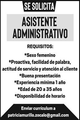 CARTA DE NO ANTECEDENTES PENALES, INTERESADOS FAVOR DE COMUNICARSE AL TELEFONOS.. 844439-85-84, 844-439-87-75 EXT. 14 Y WHATSAPP 844-159-95-77. INSTITUCION EDUCATIVA UBICADA AL NORTE DE SALTILLO, SOLICITA PERSONAL FEMENINO PARA INTENDENCIA, OFRECEMOS BUEN SUELDO, PRESTACIONES SUPERIORES A LAS DE LEY, EXCELENTE AMBIENTE DE TRABAJO. REQUISITOS INDISPENSABLES EDAD DE 18 A 45 AÑOS, QUE VIVA AL NORTE DE SALTILLO O EN RAMOS ARIZPE SOLICITUD PRINTAFORM, 2 CARTAS DE RECOMENDACIÓN, CARTA DE NO ANTECEDENTES PENALES, INTERESADOS FAVOR DE COMUNICARSE AL TELEFONOS.. 844 -439-85-84 Y 844-439-87-75 EXT. 14; SOLO WHATSAPP 844-159-95-77. MERCADO DE ABASTOS SOLICITA PERSONAL DE LIMPIEZA, SEXOS MASCULINO. PRESENTARSE CON PAPELERIA COMPROBANTE DE DOMICLIO, SOLICITUD ELABORADA, CARTAS DE RECOMENDACION, NUMERO DE IMSS E IDENTIFICACION OFICIAL. INTERESADOS PRESENTARSE EN LAS OFICINAS CENTRALES DEL MERCADO DE ABASTOS. VARIOS .EMPRESA DE GIRO FUNERARIO SOLICITA ENCARGADO DE CAPILLA Y GUARDIA DE SEGURIDAD, DISPONIBILIDAD PARA TRABAJAR FINES DE SEMANA, ROLAR HORARIO, VIVIR EN ZONA CENTRO, ORIENTE O PONIENTE DE LA CIUDAD. INTERESADOS PRESENTARSE EN MIGUEL HIDALGO #1228, CASI ESQUINA CON FRANCISCO COSS O COMUNICARSE AL 844 41444 85. ENTREVISTAS DE LUNES A VIERNES EN HORARIO DE OFICINA. ALTIMA ALARMAS Y ACCESORIOS SOLICITA ELECTRICO AUTOMOTRIZ. INSTALADOR DE ALARMAS, ACCESORIOS Y AUDIO, POLARIZADOR DE AUTOS. EXCELENTE SUELDO, PAGO X SEMANA, PAGO DE COMISIONES, BONO X SEMANA. INFORMES AL. 844-427-45-60 SE SOLICITA AYUDANTES GENERALES, EN AIRE ACONDICIONADO. LLAMAR ALTELEFONO. 844-427-20-64 SE SOLICITA CHOFERES PARA RETROEXCAVADORA, ROLL OFF, CAMION DE VOLTEO, QUINTA RUEDA Y SOLDADORES, WHATSAPP AL 844-504-10-11 SE SOLICITAN ELECTRICISTAS, AYUDANTE Y UN SOLDADOR DE PREFERENCIA QUE VIVA EN RAMOS ARIZPE, SALARIO INICIAL $2,800. POR SEMANA. 844-147-13-42 6F Clasificados ZóCalo Saltillo Domingo 11 de junio del 2023 NORTE FIAT OTROS