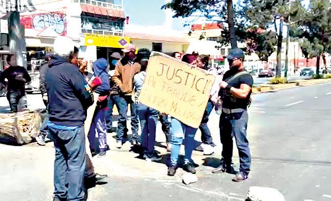 El grupo de 50 afectados que desde el sábado recibieron la garantía de pago por parte del apoderado legal de la empresa ante la FGE, cerraron de nueva cuenta el bulevar Venustiano Carranza de sur a norte, por un lapso de tres horas, hasta la llegada de personal de la Fiscalía.