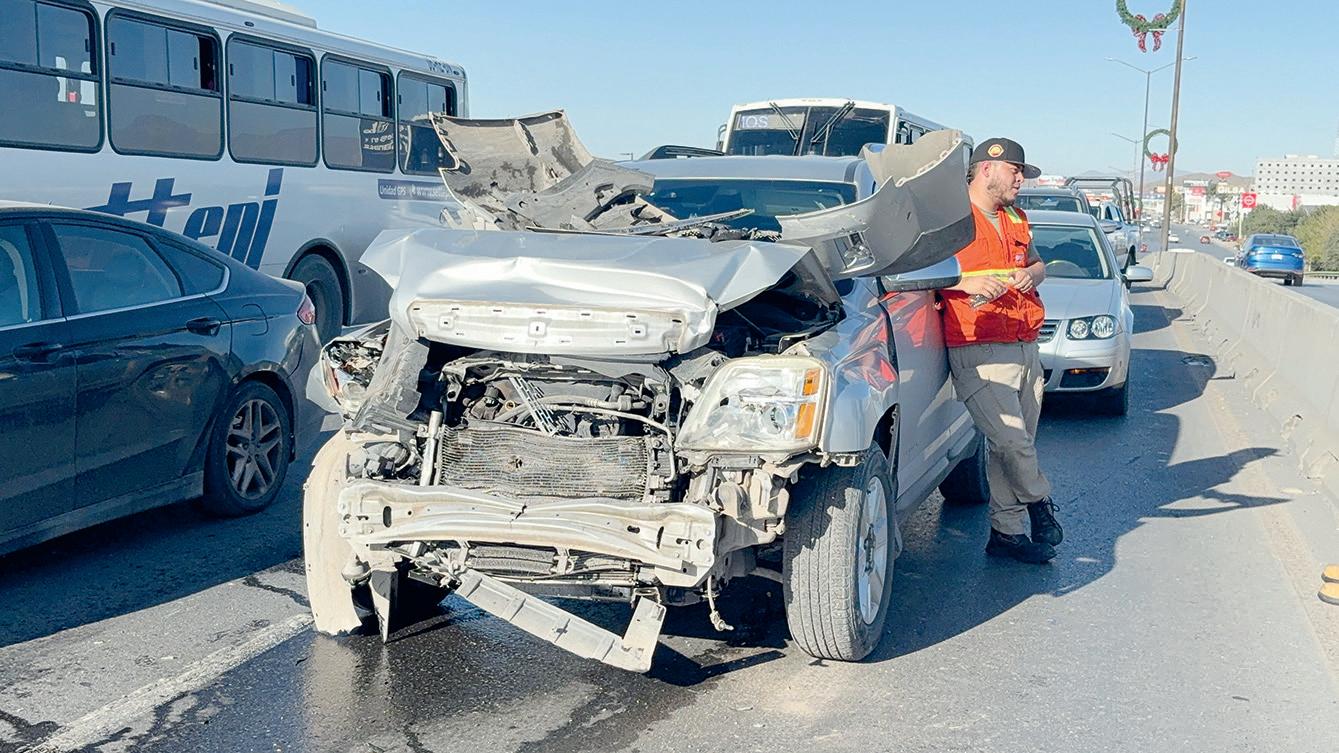 A las 15:00 horas, el conductor de una GMC Terrain, se desplazaba a exceso de velocidad con rumbo al sur, y a la altura del bulevar Luis Donaldo Colosio chocó por alcance contra una camioneta Buick. Por el impacto, la camioneta afectada se proyectó contra un camión que circulaba frente a ella. Por fortuna nin-